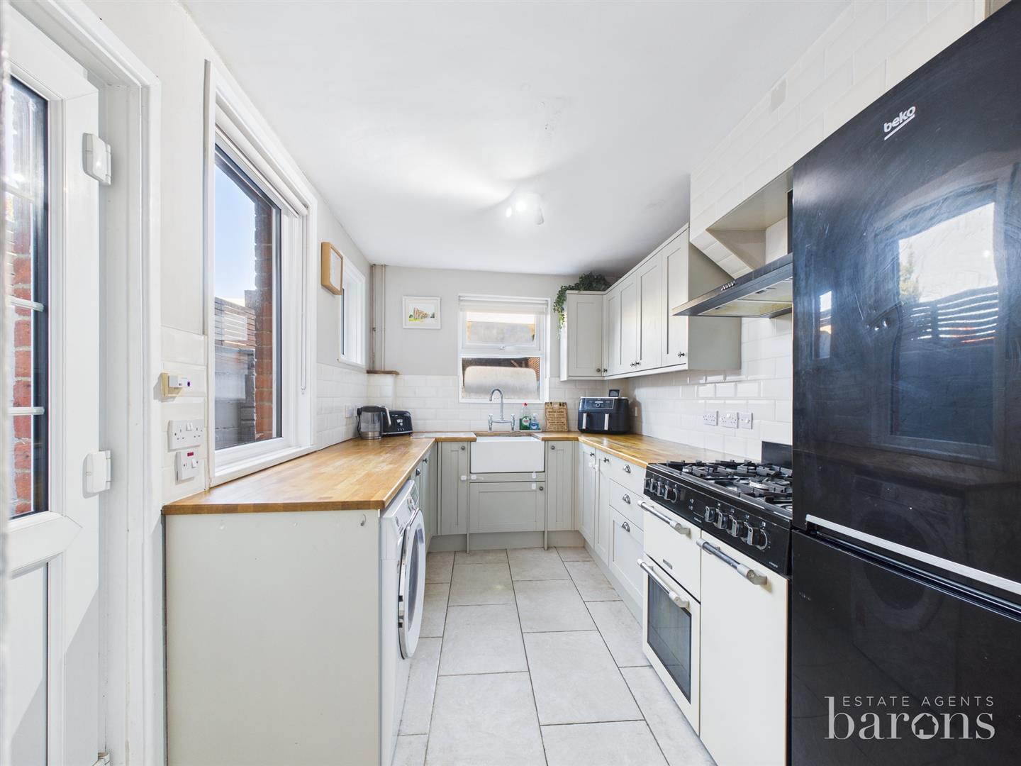 Barons Estate Agents are pleased to bring to the market with NO ONWARD CHAIN this two-bedroom character property, ideally suited to families, first-time buyers, or investors, and conveniently located in the town centre. The ground floor features an open-plan living and dining area, with the kitchen positioned to the rear. The first floor comprises two bedrooms and a spacious family bathroom. Externally, the property benefits from a large gazebo structure with power supply, newly installed decking, side access and permit parking to the front. Additional features include double and triple glazing and gas central heating. An early viewing is highly recommended by the vendor’s sole agent.