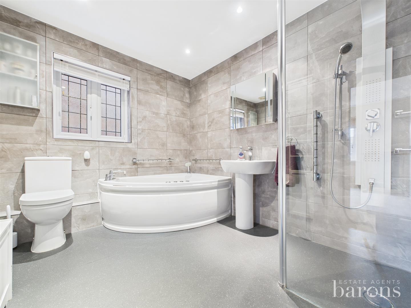 Barons Estate Agents are pleased to offer this spacious and beautifully presented five bedroom detached family home, located in the sought-after area of Beggarwood. Lovingly maintained by the current owner, the property is offered to the market in excellent condition throughout. The ground floor features a porch and entrance hall, an integral garage with power and lighting, a generous lounge, a cloakroom, a large open plan kitchen/dining room, and a separate utility room. The first floor comprises four well-proportioned bedrooms, a dressing room, an ensuite shower room, and a recently refitted wet room with a jacuzzi bath and shower. The top floor offers a substantial fifth bedroom with its own ensuite, a further dressing room, and a loft room. Outside, the front of the property provides ample driveway parking, while the rear garden is a true highlight – beautifully landscaped and ideal for entertaining, complete with a hot tub, pergola, and a bar. Further benefits include gas central heating and double glazing throughout. As the sole agent, Barons highly recommend an early viewing to fully appreciate everything this ideal family home has to offer.